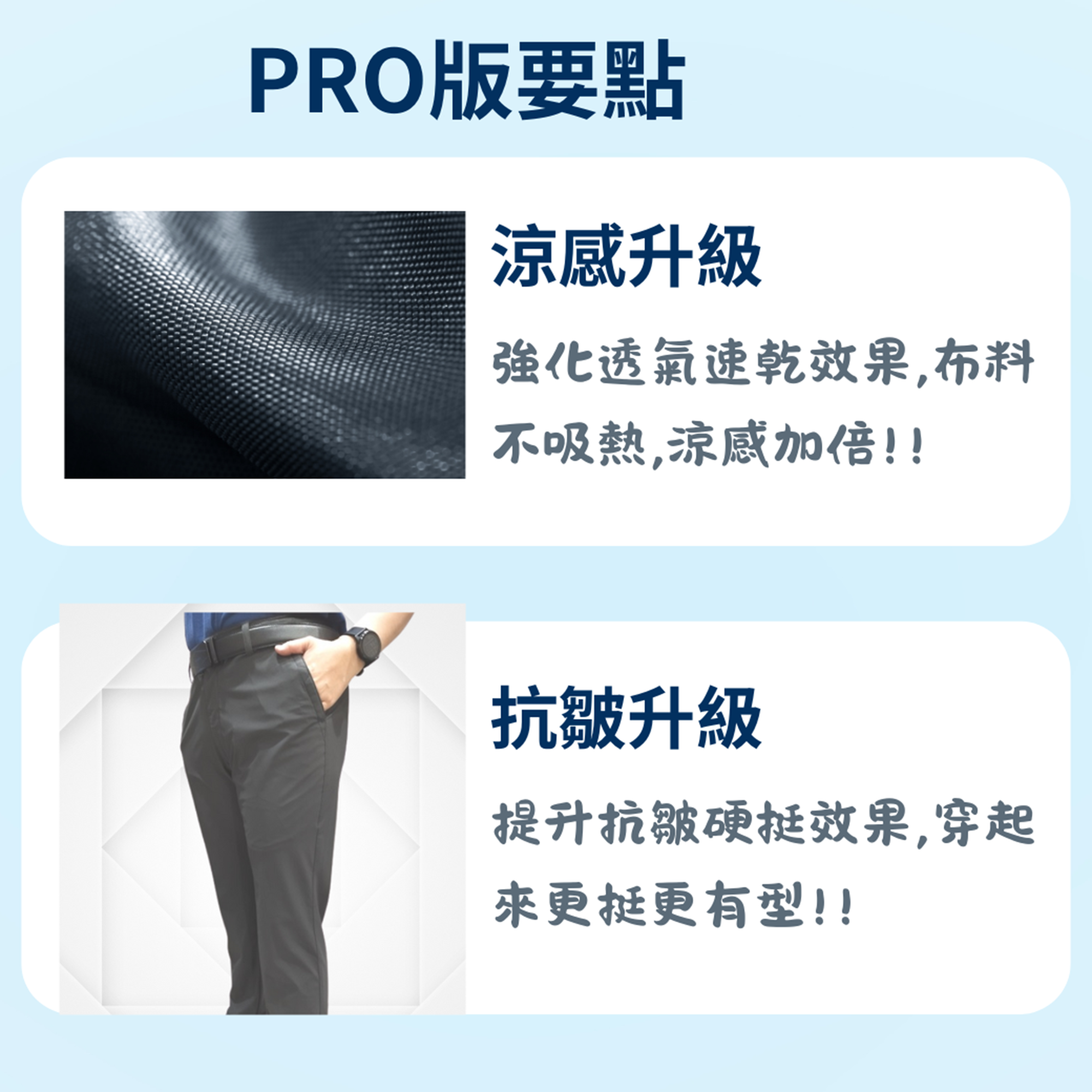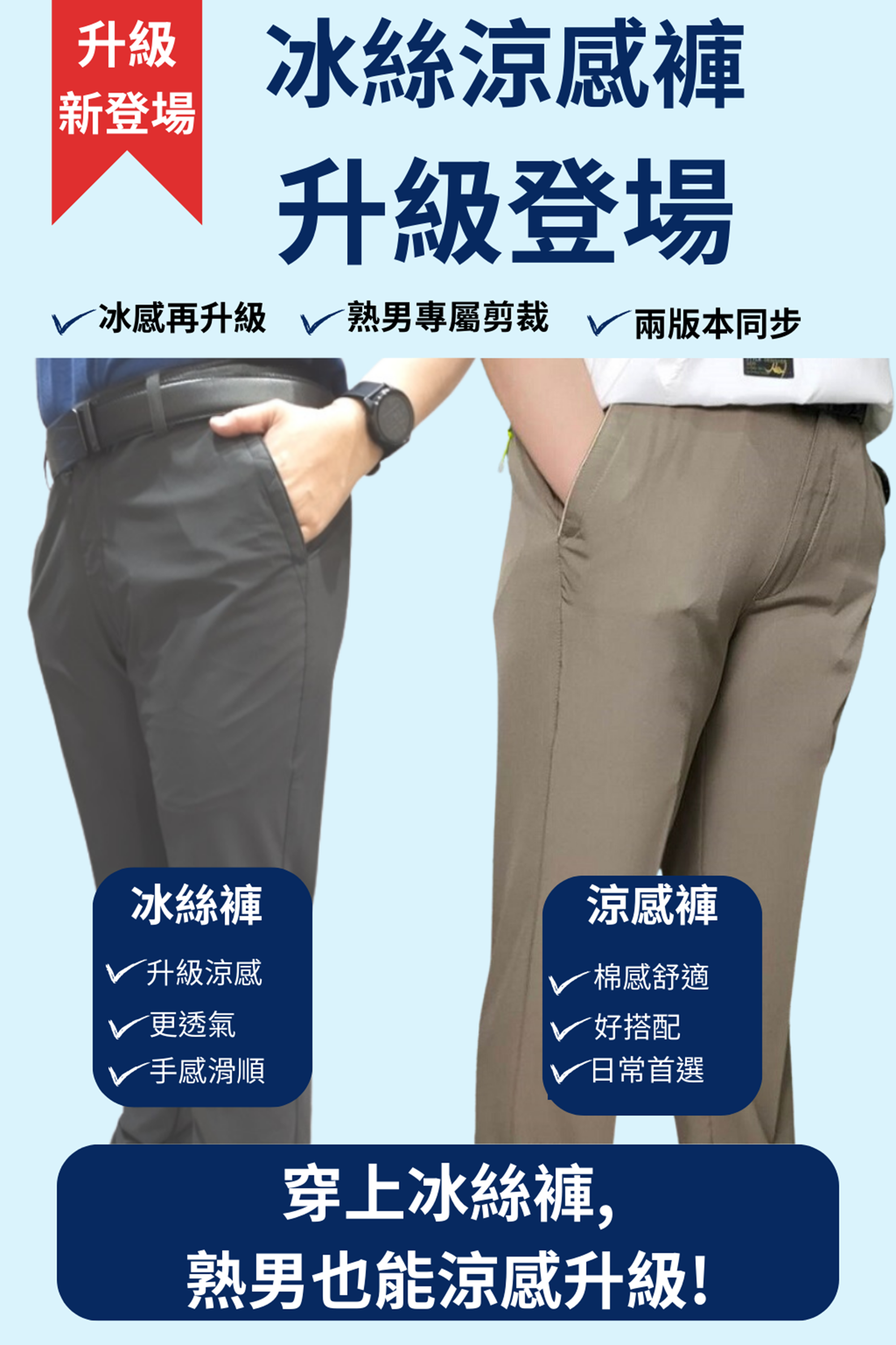 甄褲|涼感冰絲機能褲|加強機能版|中高腰直筒・無摺彈性・半鬆緊褲頭(30~43 吋)免費改長