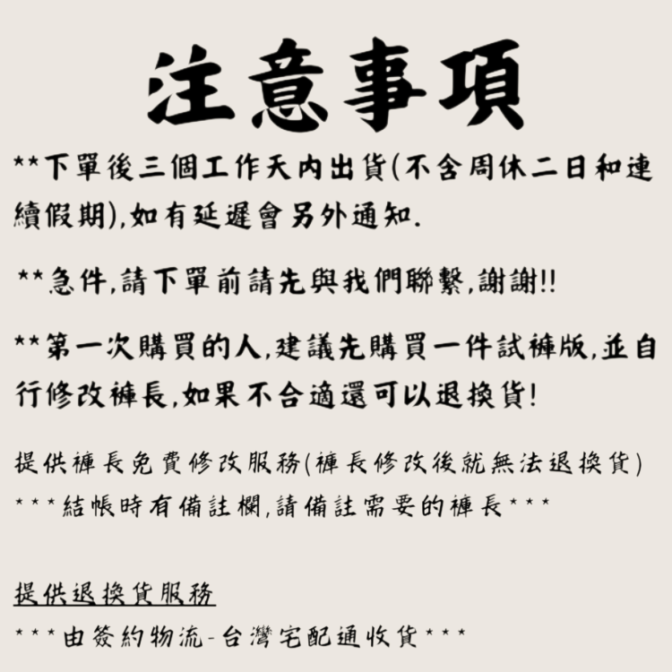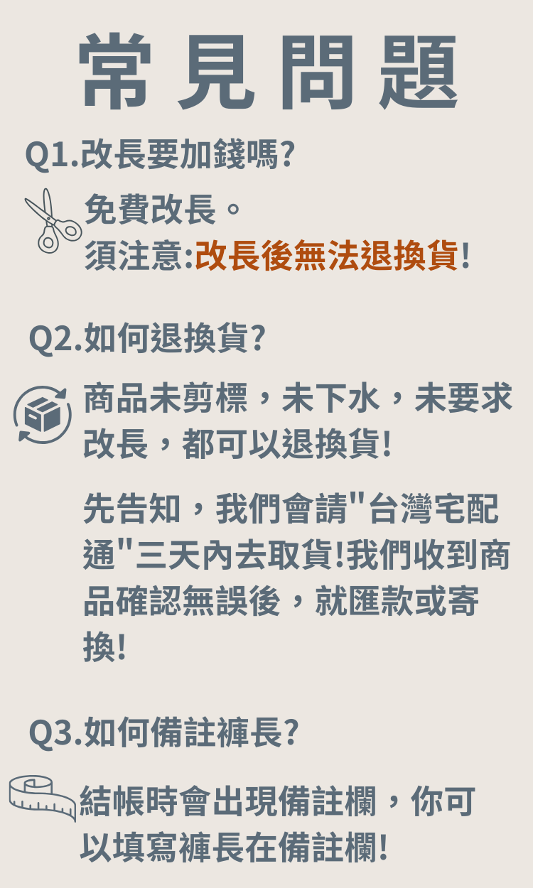 ✔ 30~43 吋免費修改褲長服務
