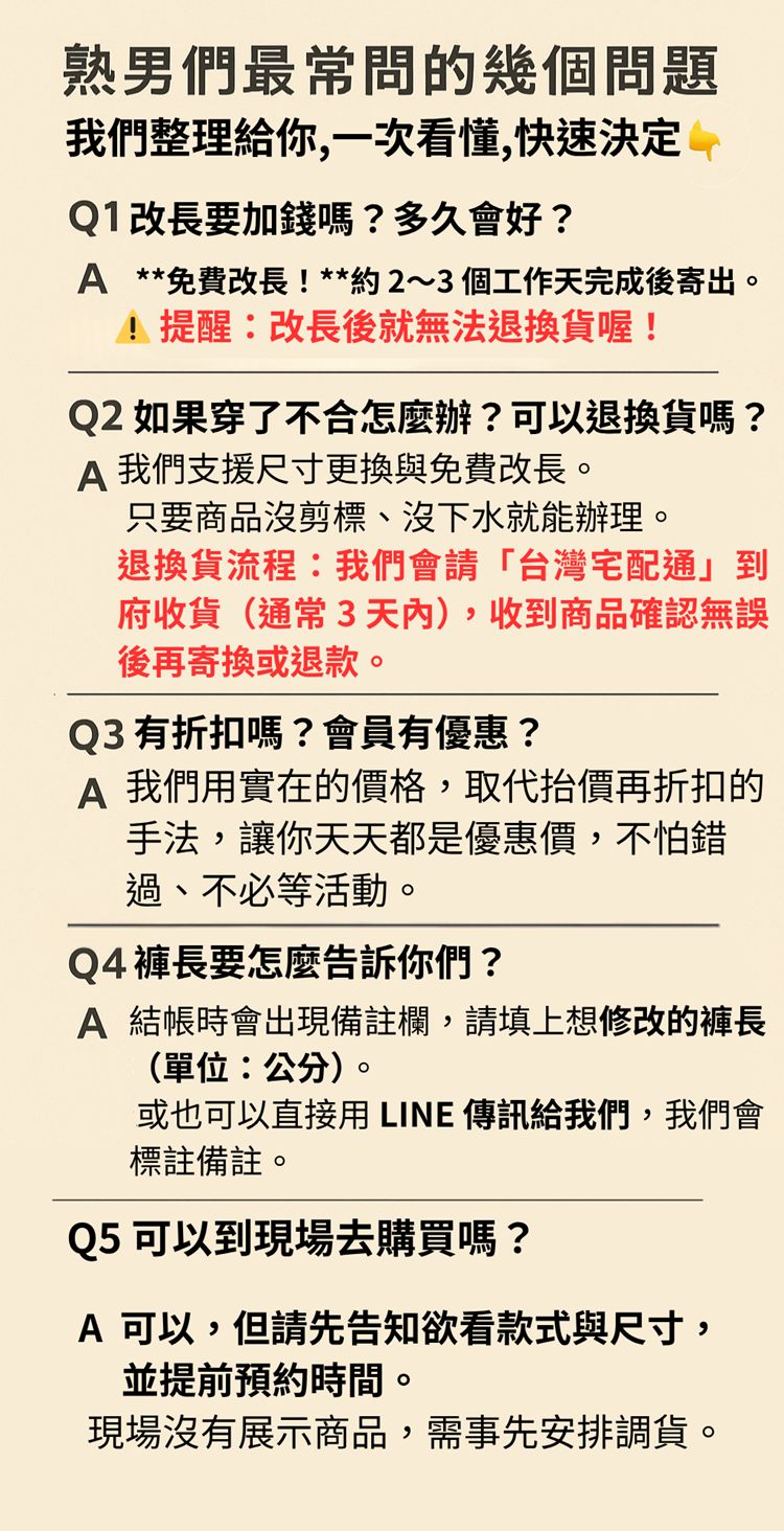 ✔ 熟男專屬版型,30~43 吋齊全尺碼